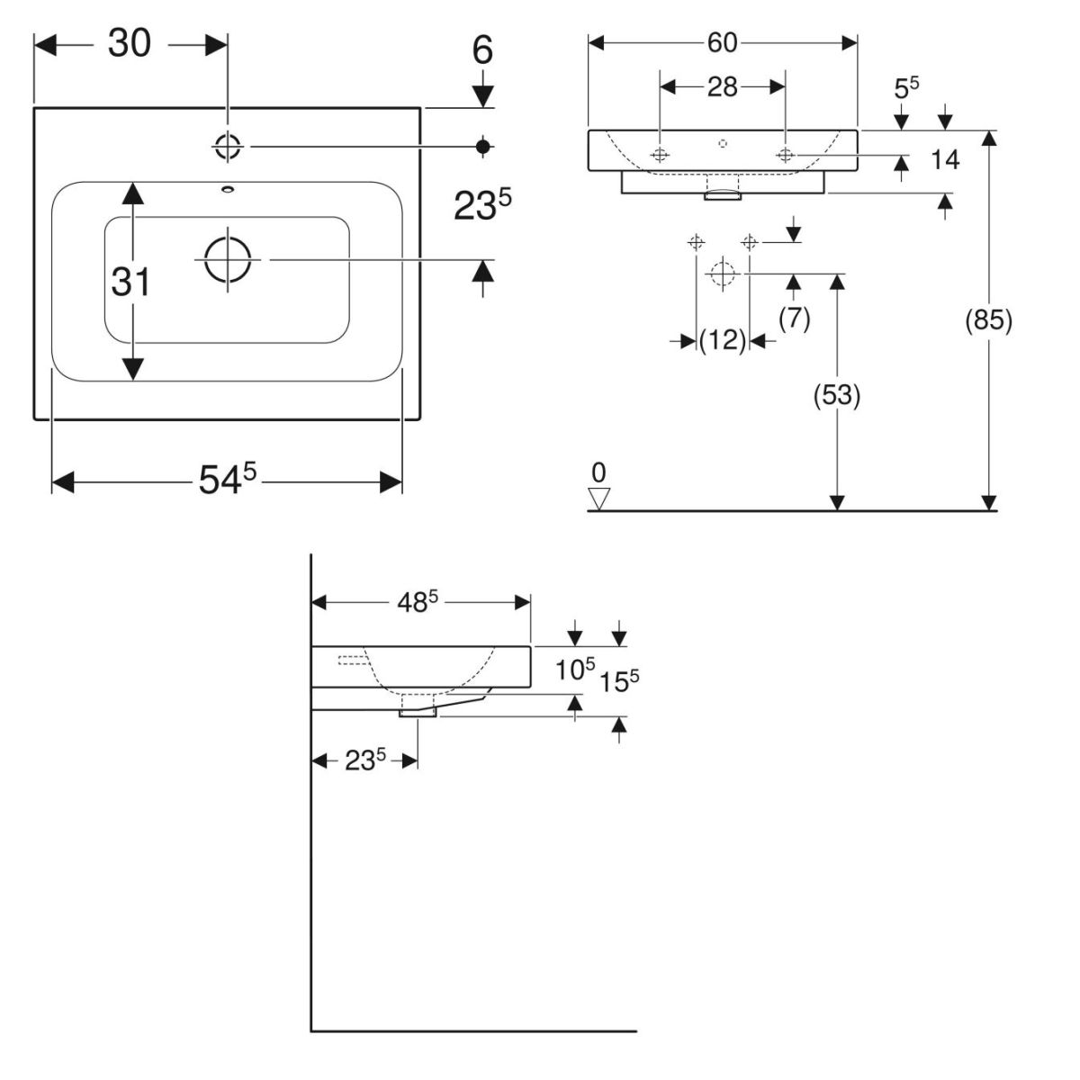 Geberit iCon Waschbecken 60x48 cm rechteckig Aufsatzwaschbecken weiß 124560600