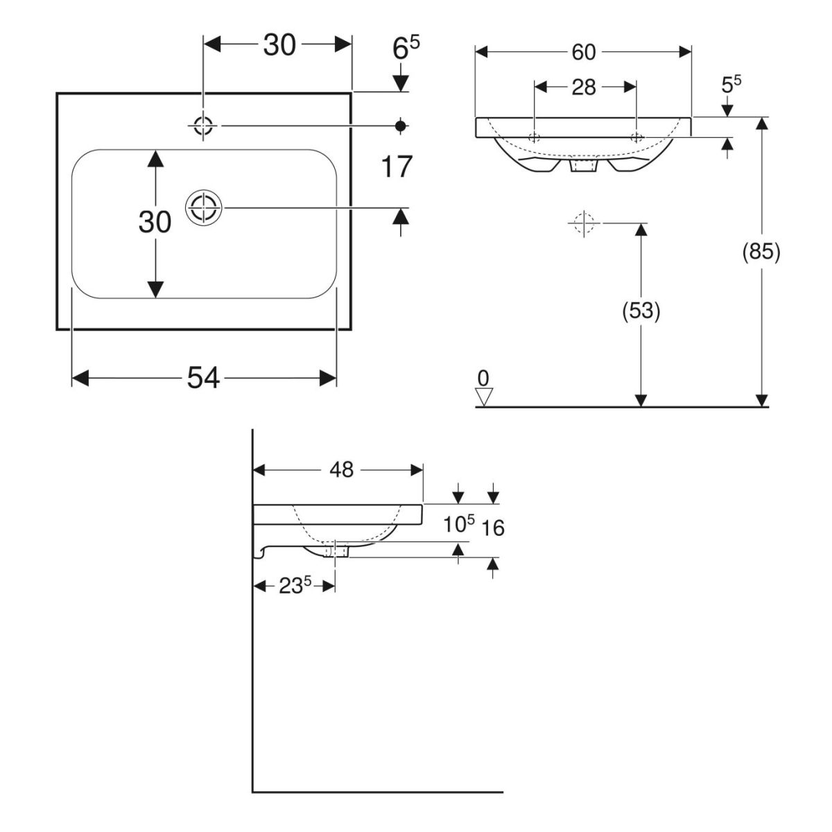 Geberit iCon Waschbecken 60x48 cm rechteckig Aufsatzwaschbecken weiß 501.847.00.8