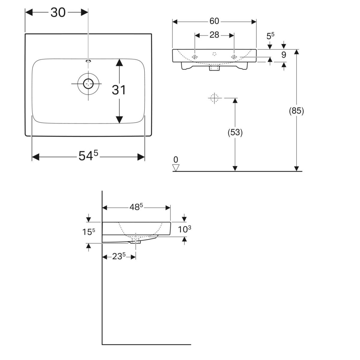 Geberit iCon Waschbecken 60x48 cm rechteckig Klassisch-Möbel weiß 124063600