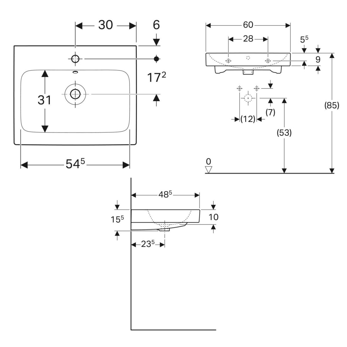 Geberit iCon Waschbecken 60x48 cm rechteckig Möbel weiß 124060600