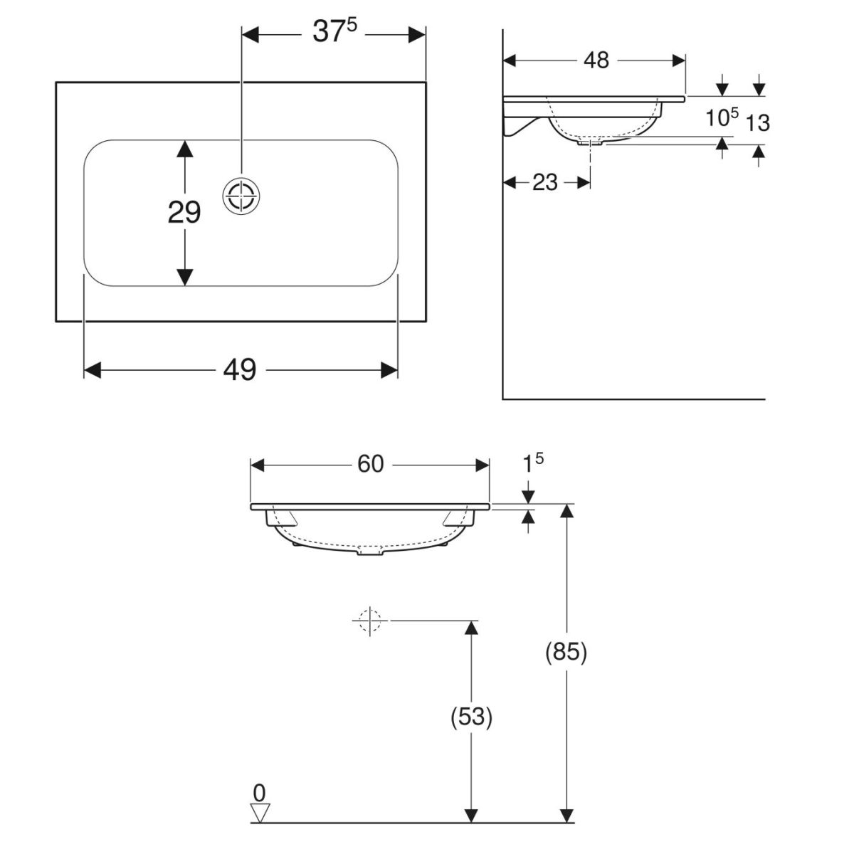 Geberit iCon Waschbecken 60x48 cm rechteckig Möbel weiß 501.843.00.4