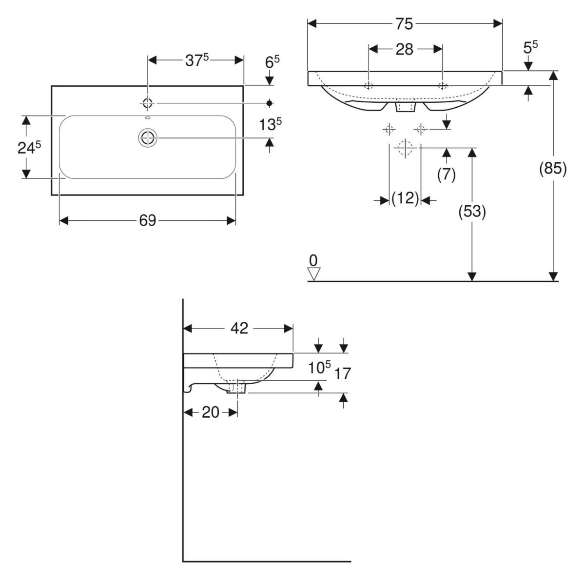Geberit iCon Waschbecken 75x42 cm rechteckig Möbel weiß 501.842.00.2