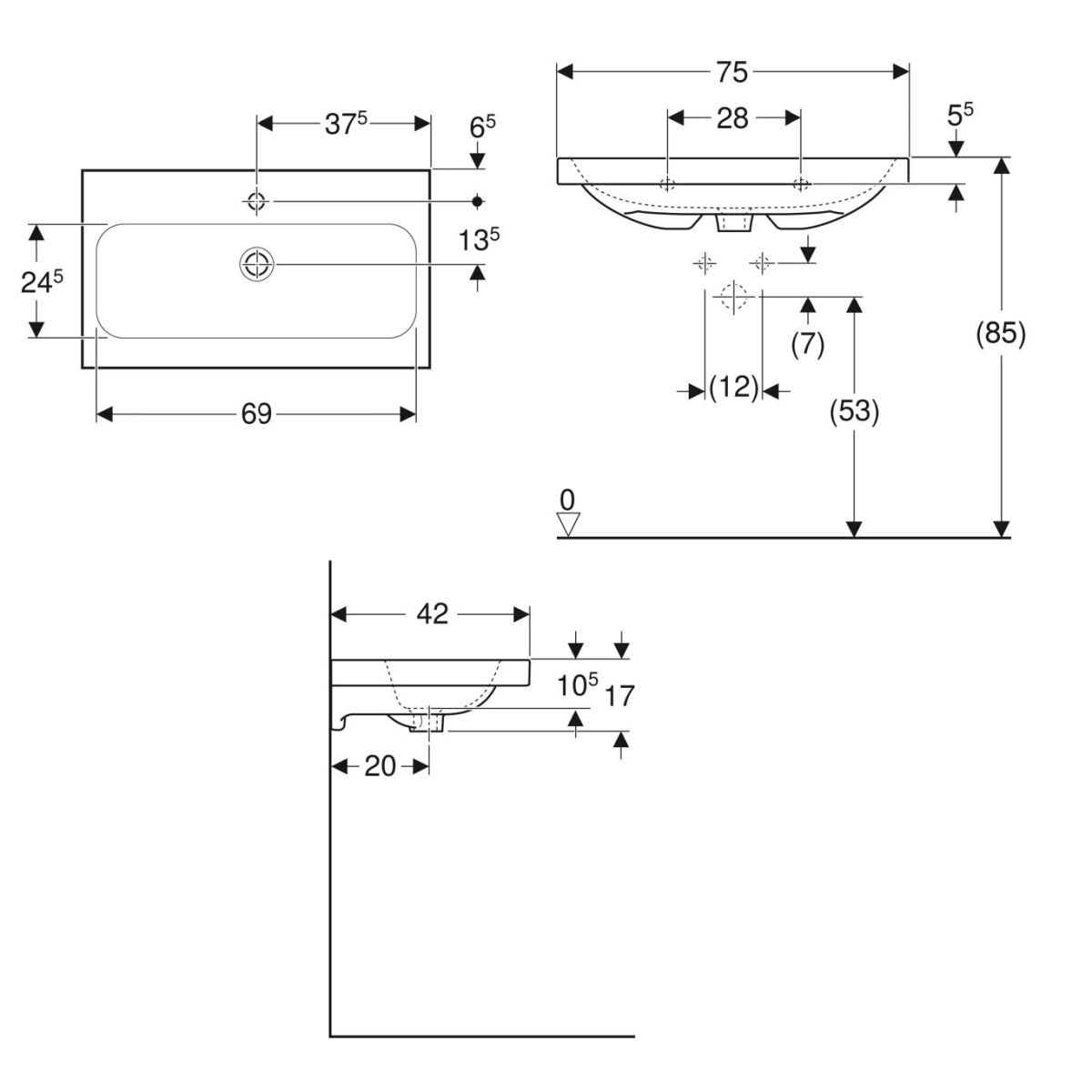 Geberit iCon Waschbecken 75x42 cm rechteckig Möbel weiß 501.842.00.6