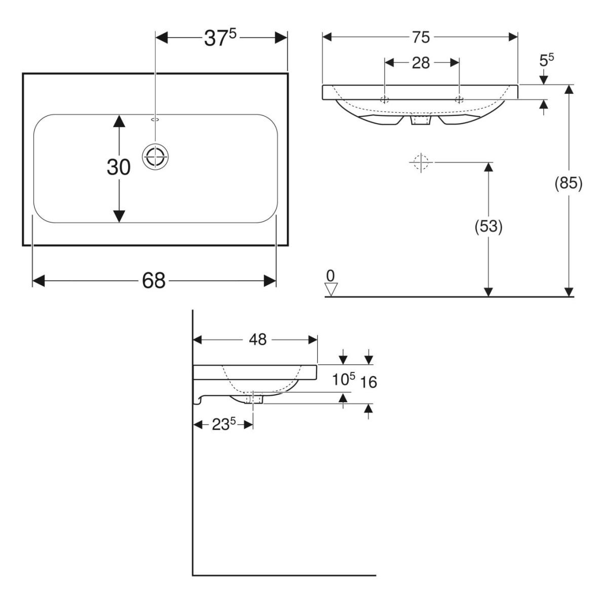 Geberit iCon Waschbecken 75x48 cm rechteckig Aufsatzwaschbecken weiß 501.848.00.4