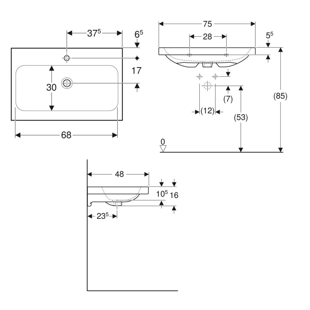 Geberit iCon Waschbecken 75x48 cm rechteckig Möbel weiß 501.835.00.6