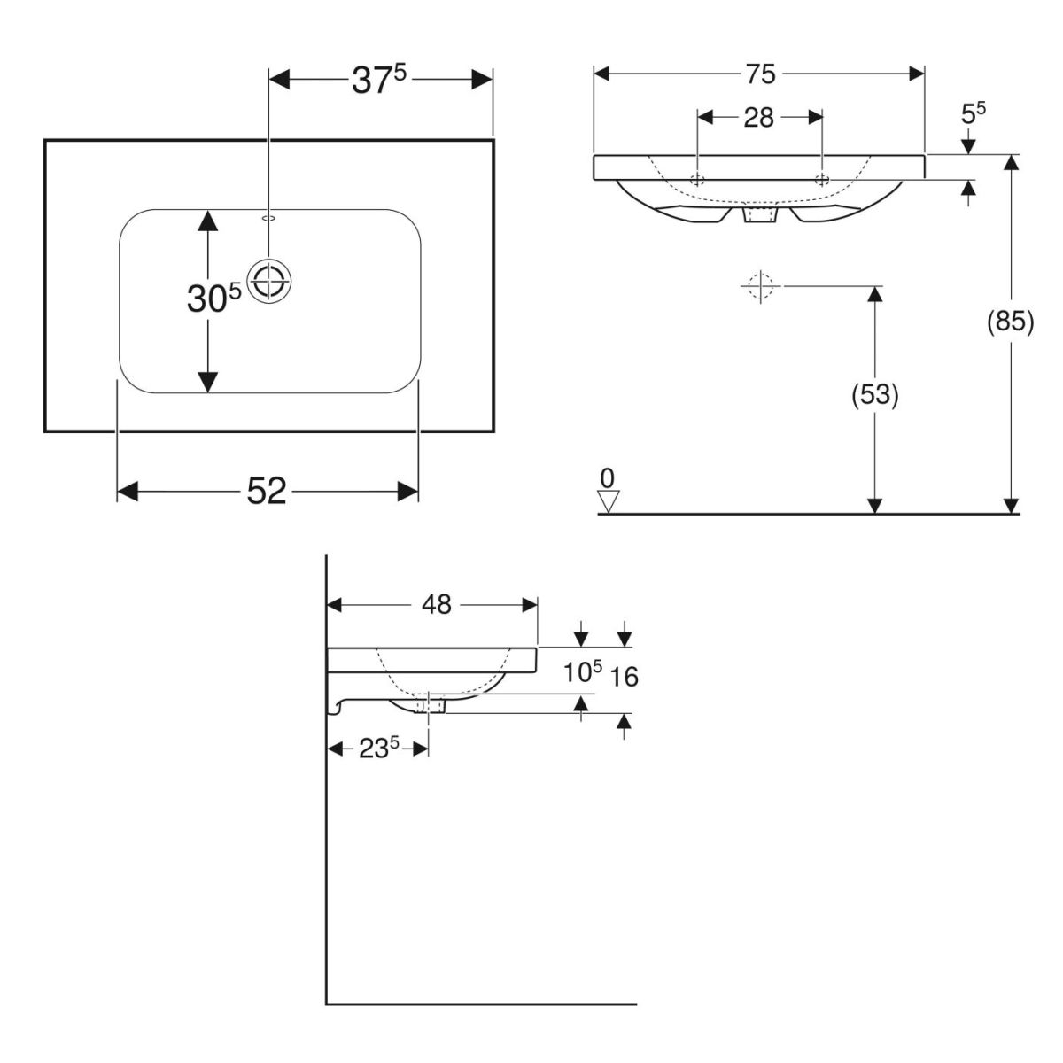 Geberit iCon Waschbecken 75x48 cm rechteckig Möbel weiß 501.839.00.4