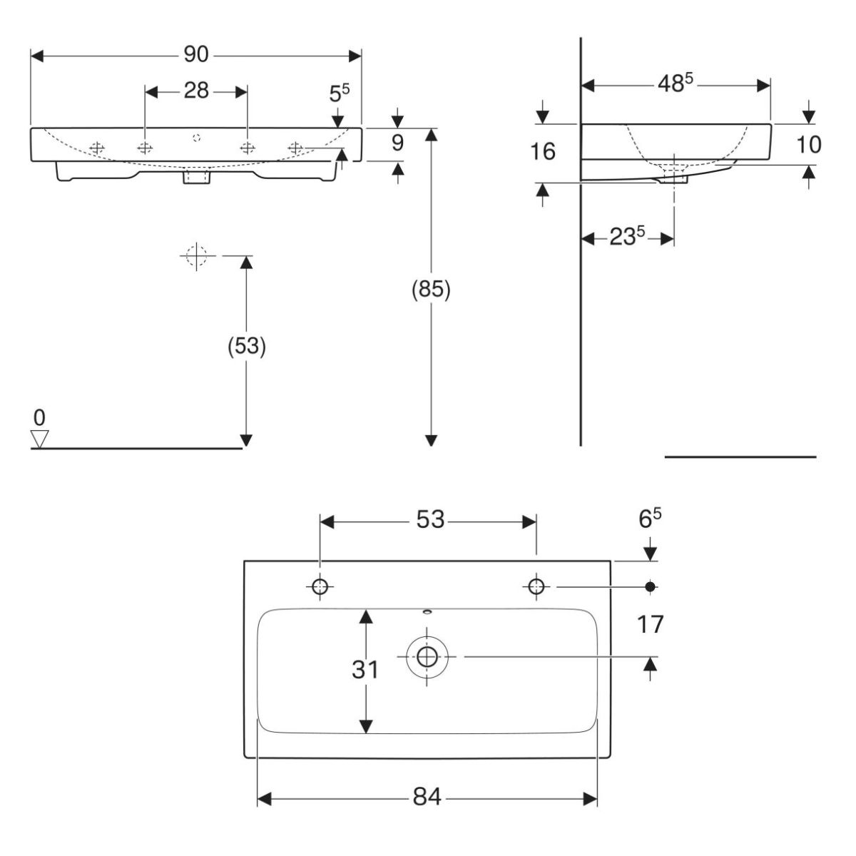Geberit iCon Waschbecken 90x48.5 cm rechteckig Möbel weiß 502.924.00.1