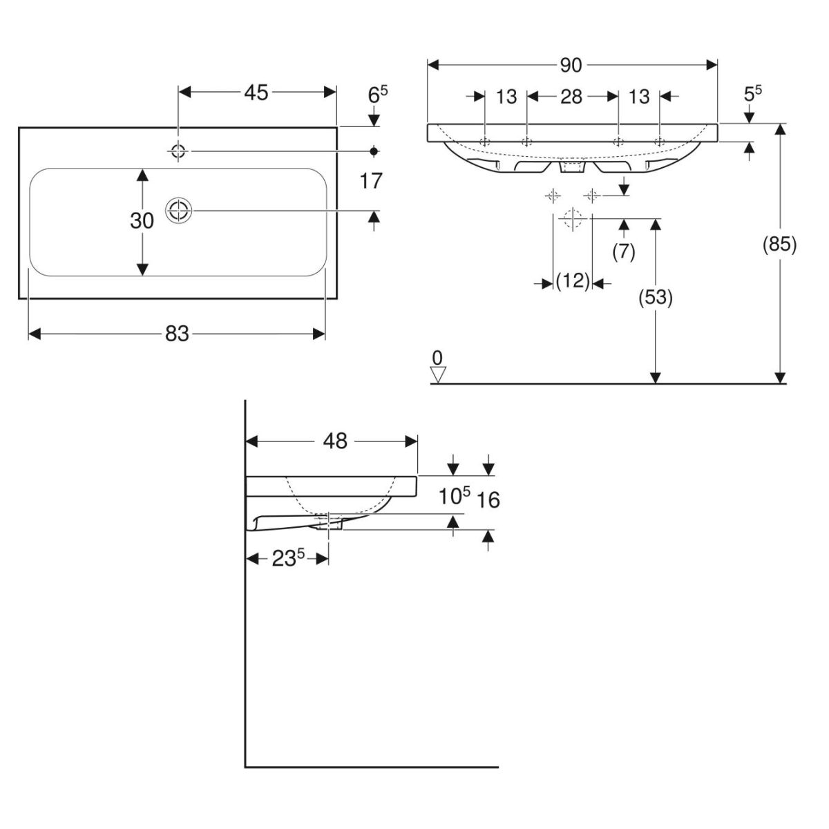 Geberit iCon Waschbecken 90x48 cm rechteckig Möbel weiß 501.836.00.6