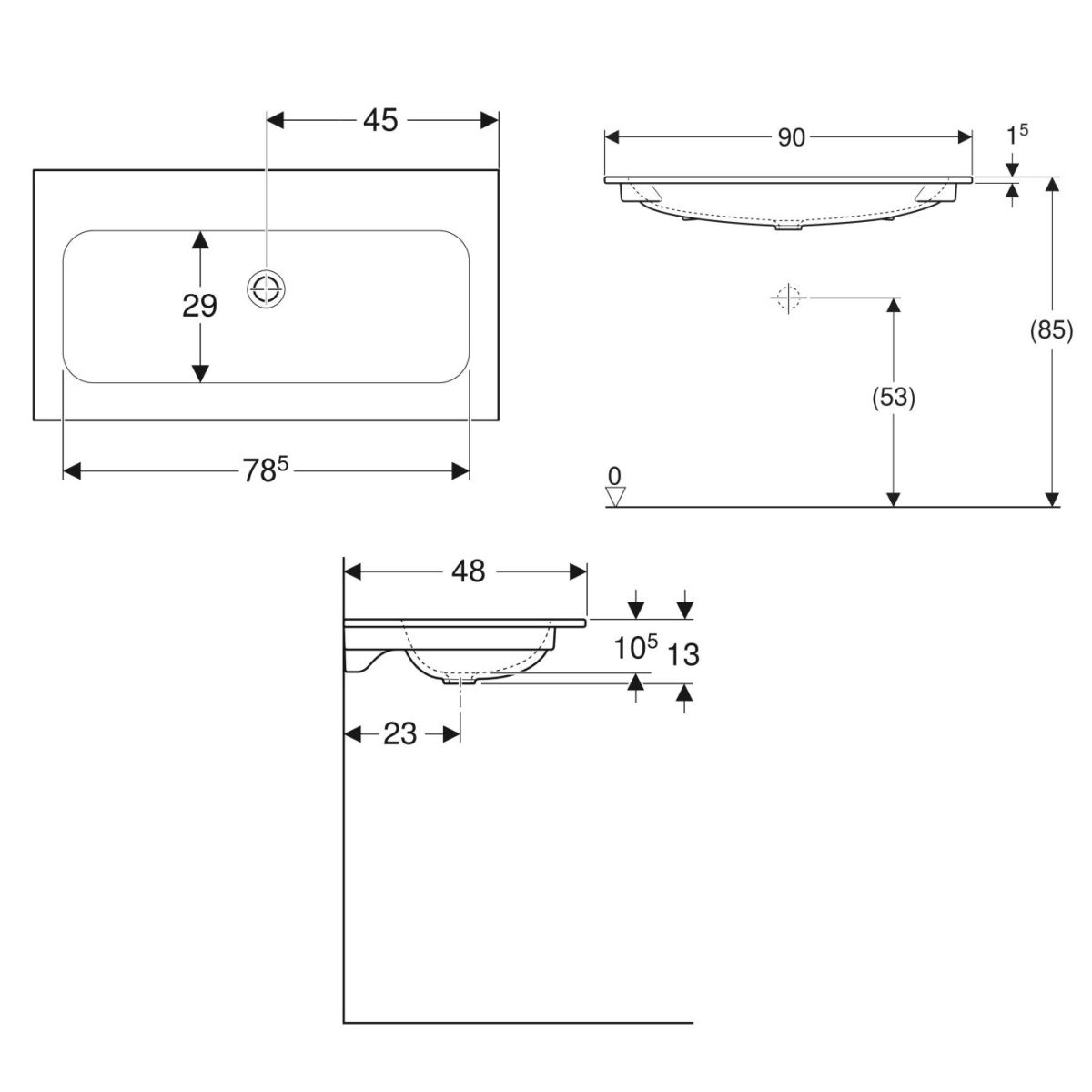 Geberit iCon Waschbecken 90x48 cm rechteckig Möbel weiß 501.845.00.4