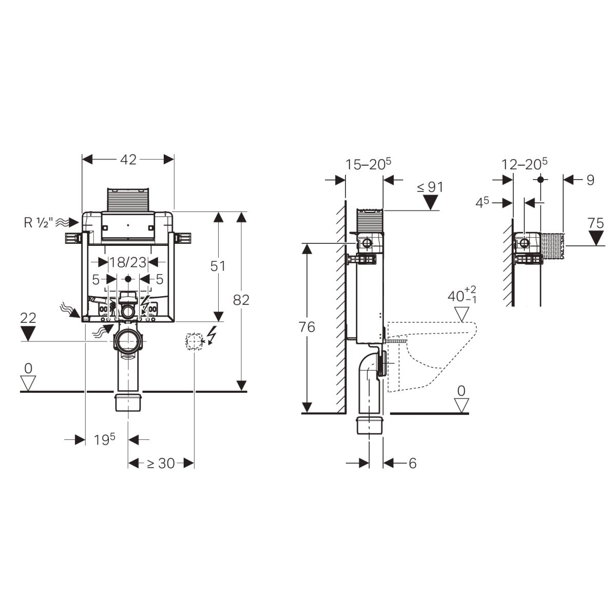 - Einstellbereich für Wassersparspülung 3–4 l