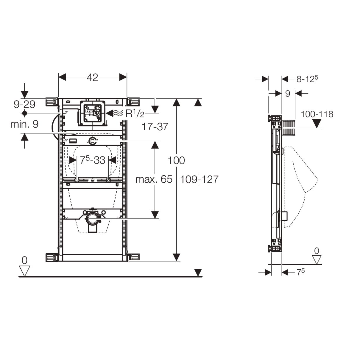 - Einbauhöhe 109-127 cm, je nach Urinal