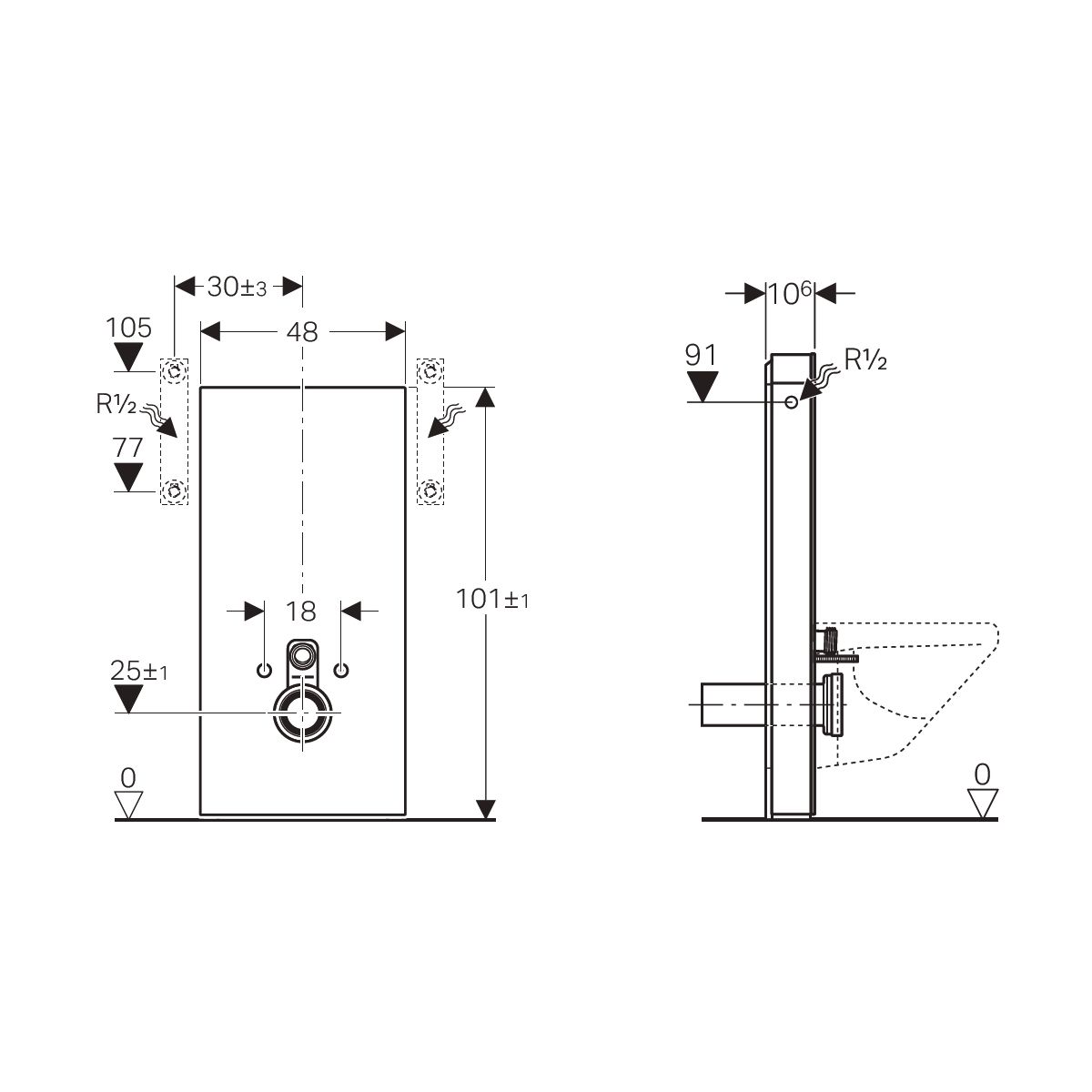 - Verwendung für Wand-WCs mit einem Befestigungsabstand von 18 cm