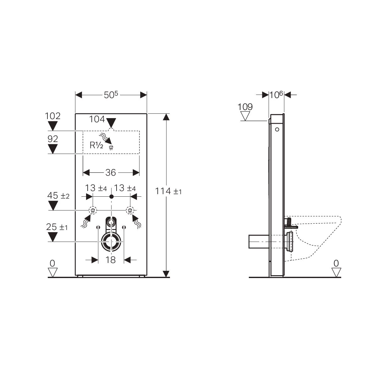 - Verwendung für Wand-WCs mit einem Befestigungsabstand von 18 cm