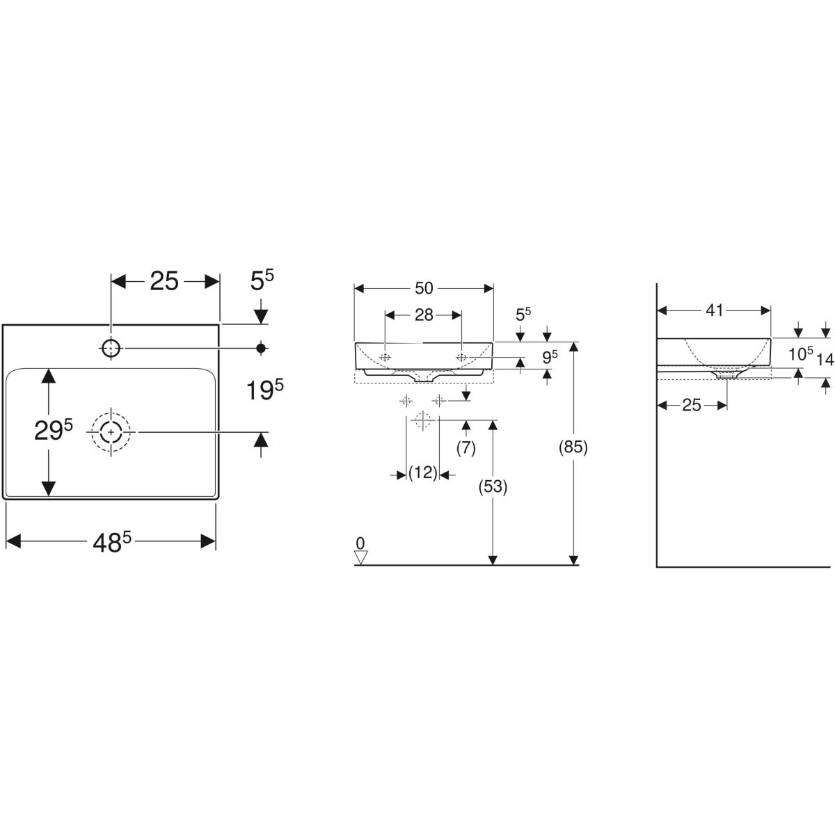 Geberit One Waschbecken 50x41 cm rechteckig Aufsatzwaschbecken weiß 505.030.01.6