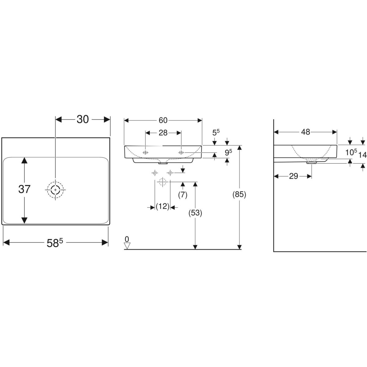 Geberit One Waschbecken 60x48 cm rechteckig Klassisch-Einbauwaschbecken weiß 505.021.01.1