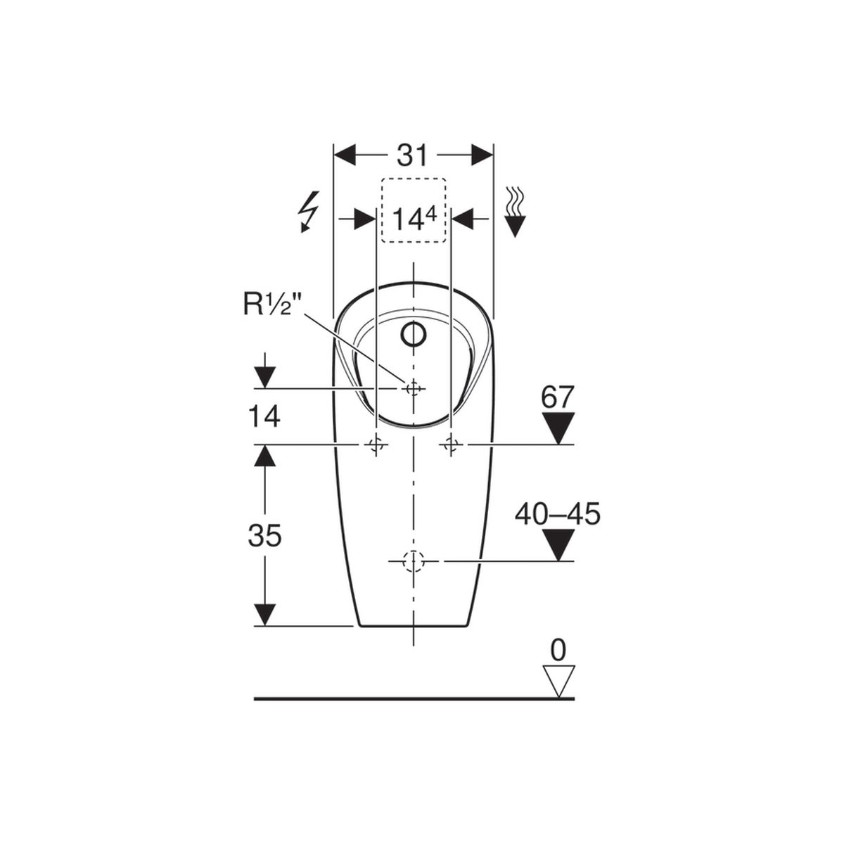 - Spülung des Urinals mit < 0,5 l Wasser pro Spülung gemäß EN 13407
