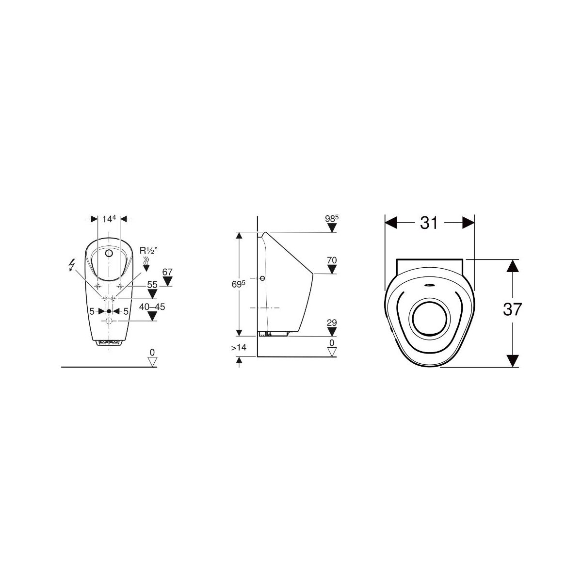 - Anpassung an den Spülbetrieb durch Ergänzung mit einem eingebauten Urinalspülsystem möglich