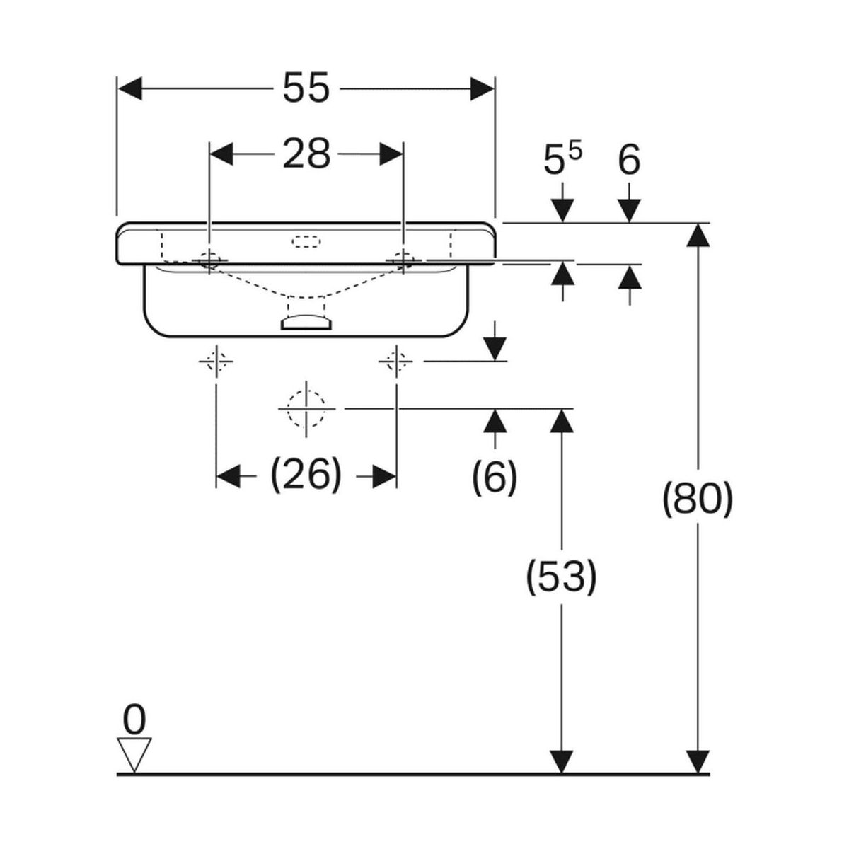 Geberit Selnova Comfort Square Waschbecken 55x52.5 cm rechteckig Klassisch für Behinderte weiß 500.785.00.7