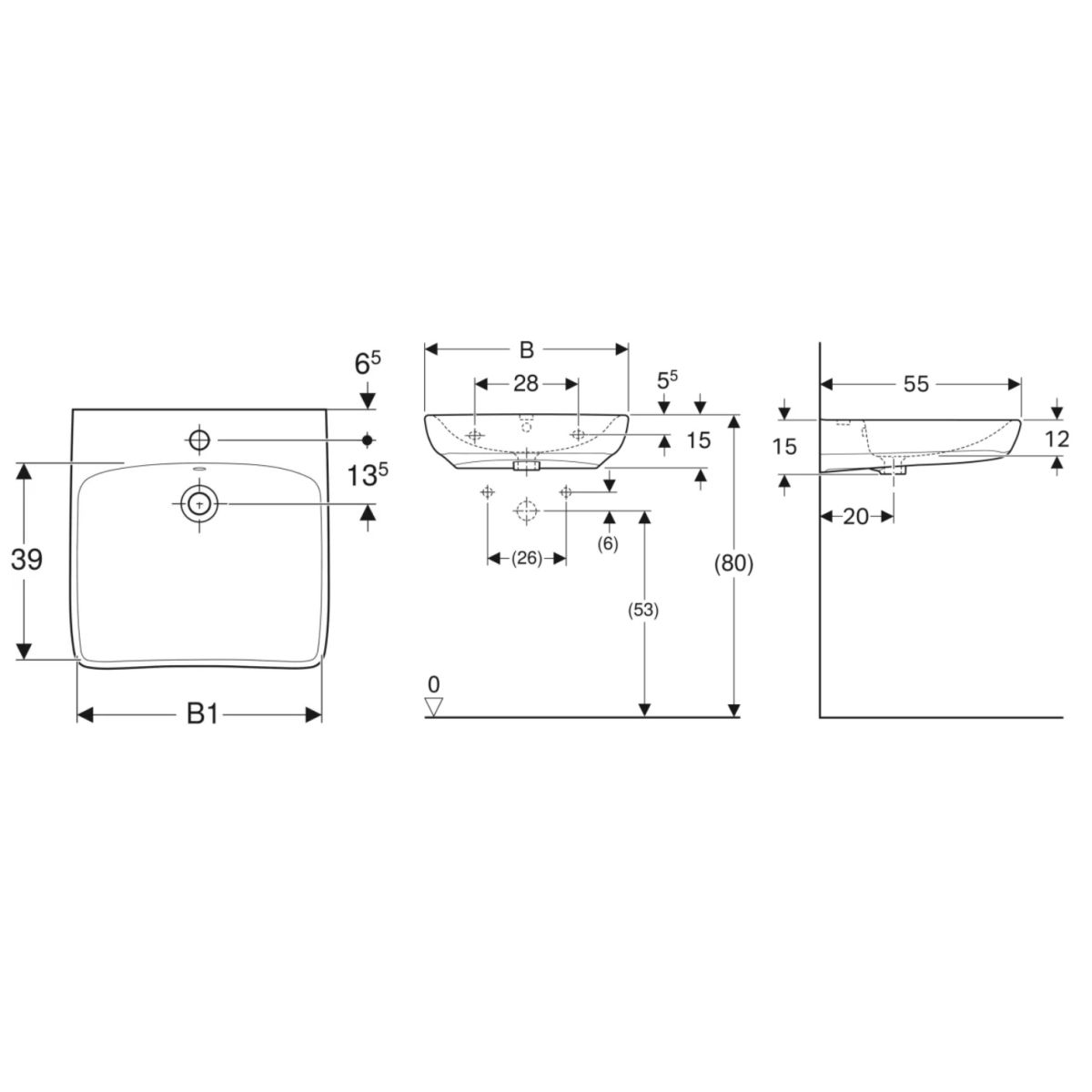 Geberit Selnova Comfort Waschbecken 65.5x55 cm rechteckig Klassisch für Behinderte weiß 500.188.01.7
