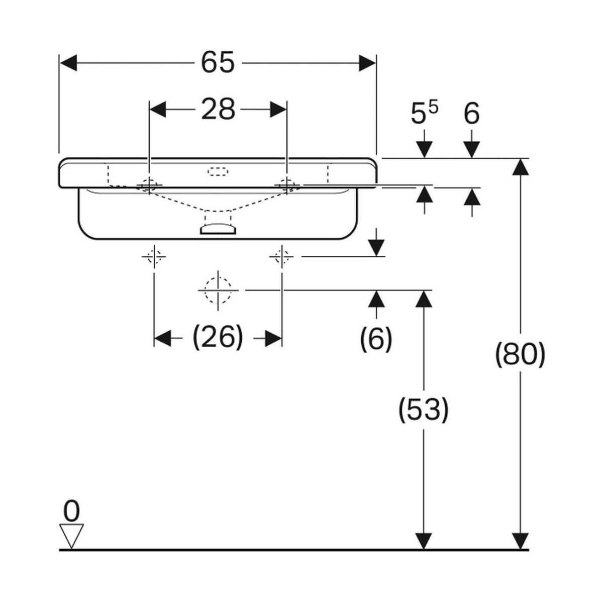 Geberit Selnova Compact Square Waschbecken 65x55 cm rechteckig Klassisch weiß 500.788.01.7