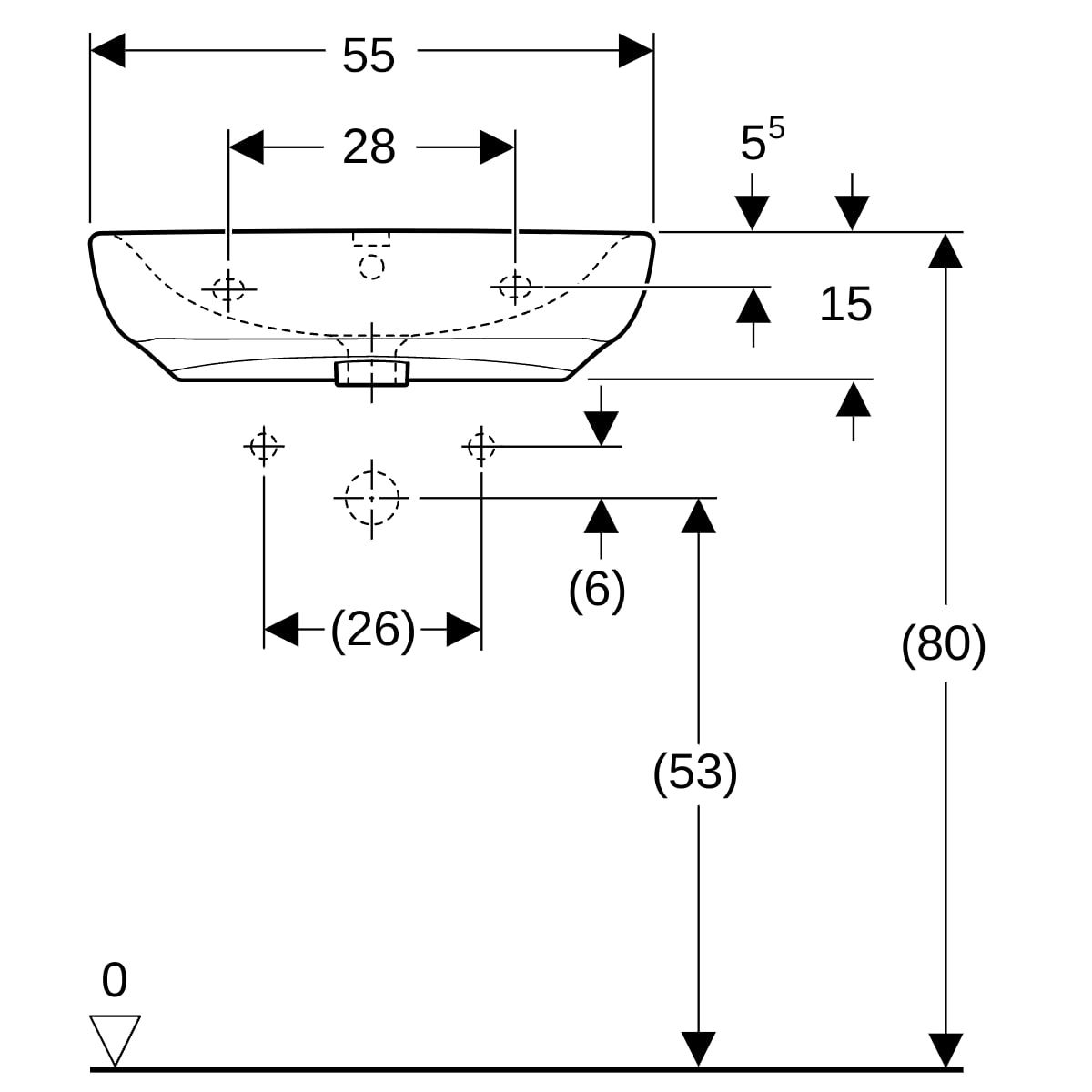 Geberit Selnova Compact Waschbecken 55x55 cm quadratisch Klassisch für Behinderte weiß 501.461.00.7