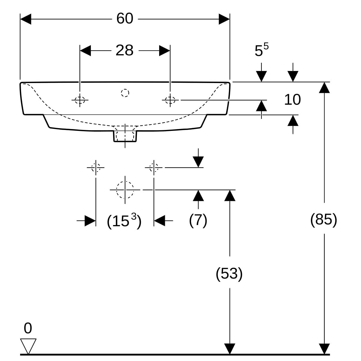 - Möglichkeit der Einbau des Waschbeckens in eine Arbeitsplatte mit Befestigung an der Wand