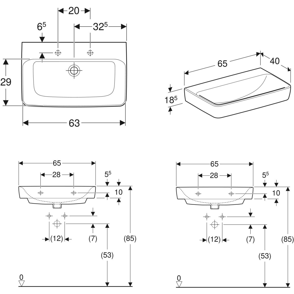 Geberit Selnova Compact Waschbecken 65x40 cm rechteckig Klassisch-Einbauwaschbecken weiß 501.893.00.7