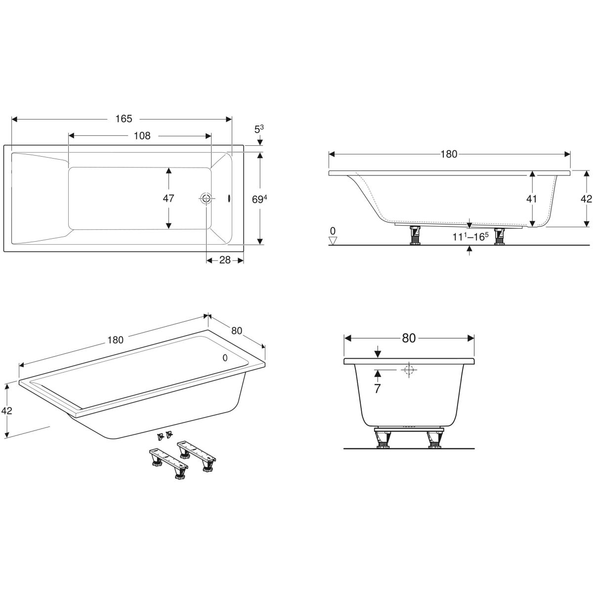 Geberit Selnova Square Rechteckige Badewanne 180x80 cm weiß 554.386.01.1