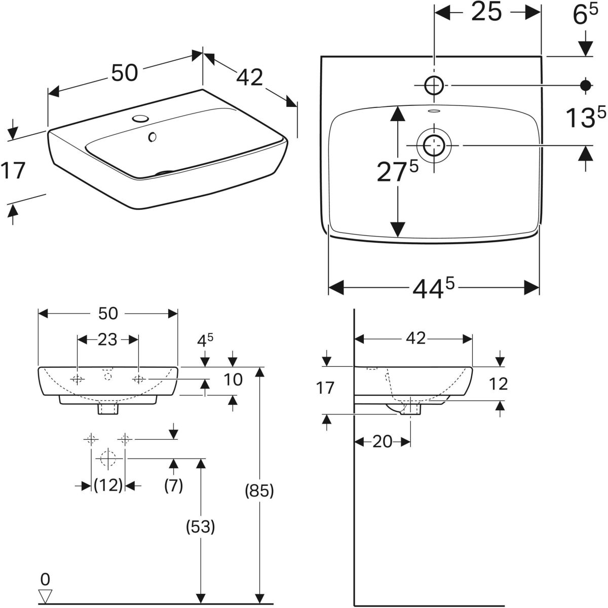Geberit Selnova Square Waschbecken 50x42 cm rechteckig Klassisch weiß 500.310.01.7