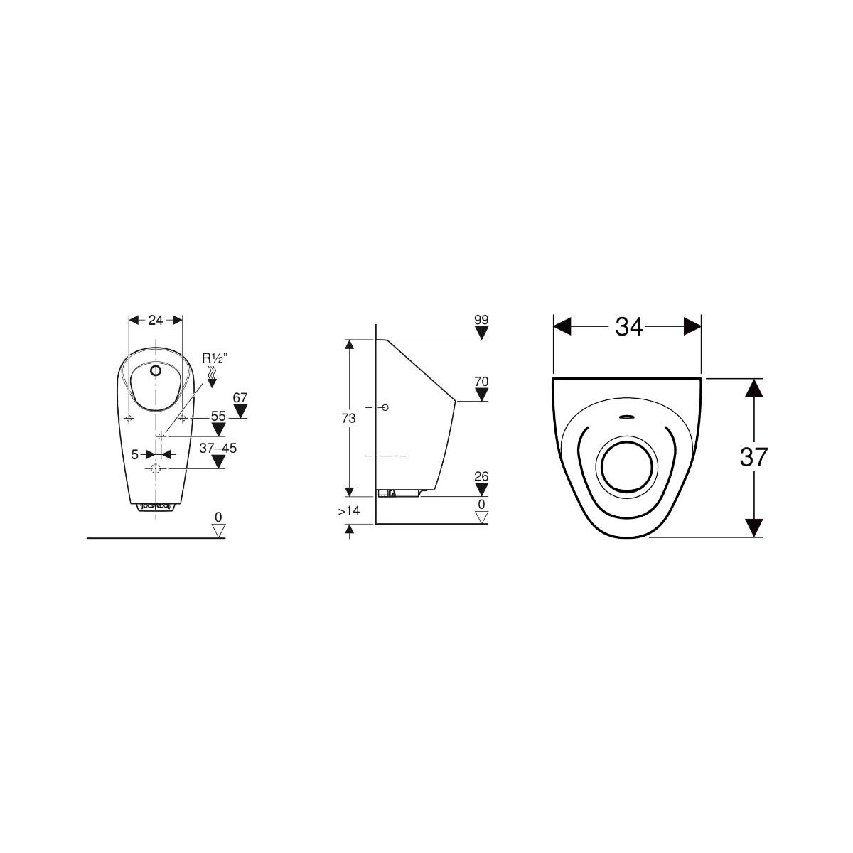 - Um das Spülventil für Urinale ohne Demontage der Keramik zu montieren und zu demontieren, muss die Höhe vom unteren Rand des Urinals mindestens 58 cm über dem fertigen Boden betragen
