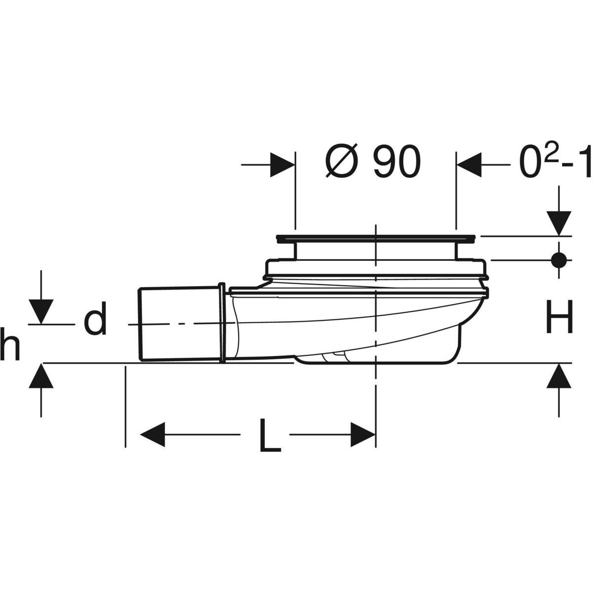 - für Duschwannen mit einem Abflussloch von ø 90 mm