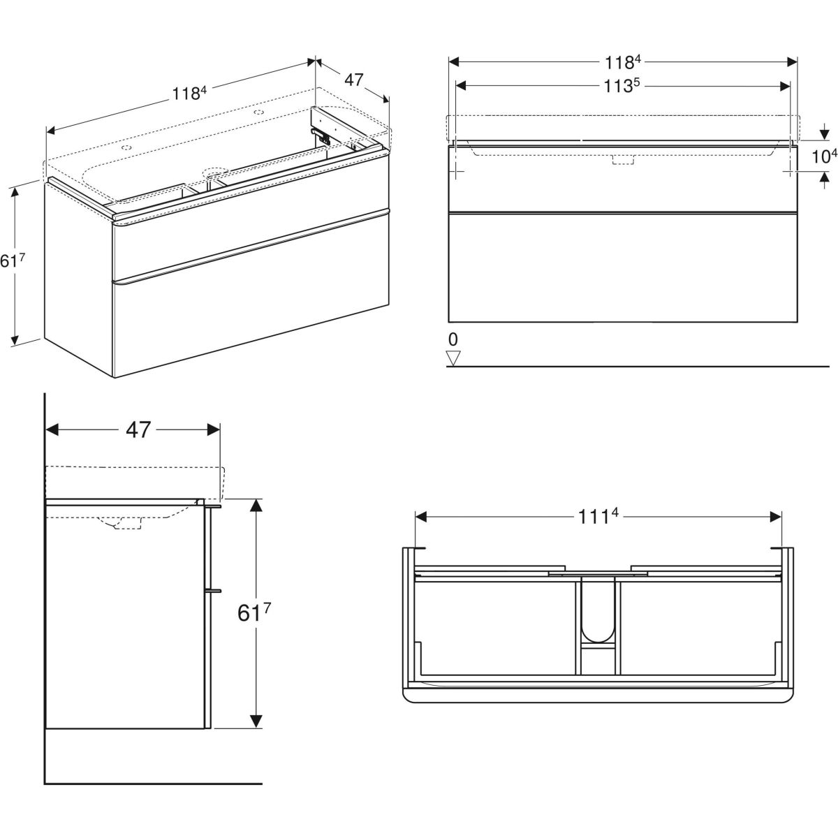 - Abmessungen: 118,4 x 61,7 x 47 cm