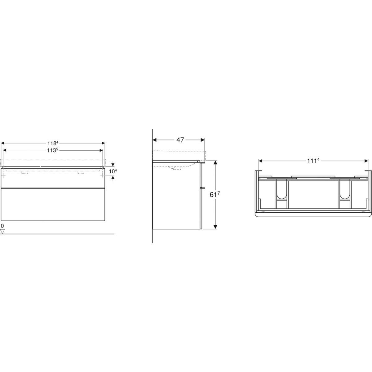 - Abmessungen: 118,4 x 61,7 x 47 cm