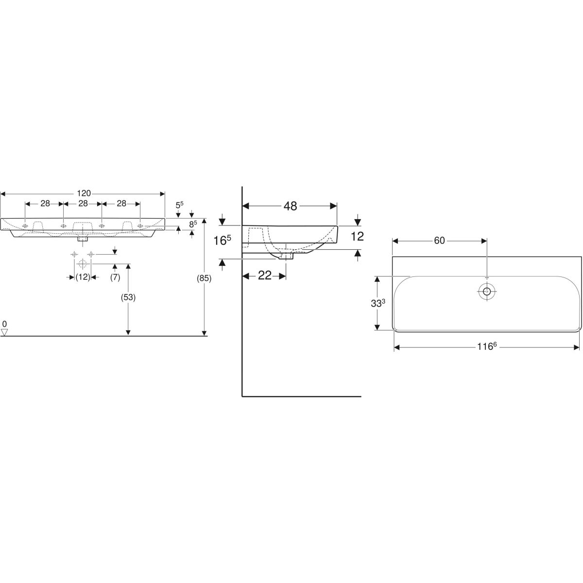 - Möglichkeit der Einbau in die Arbeitsplatte mit Befestigung des Waschbeckens an der Wand