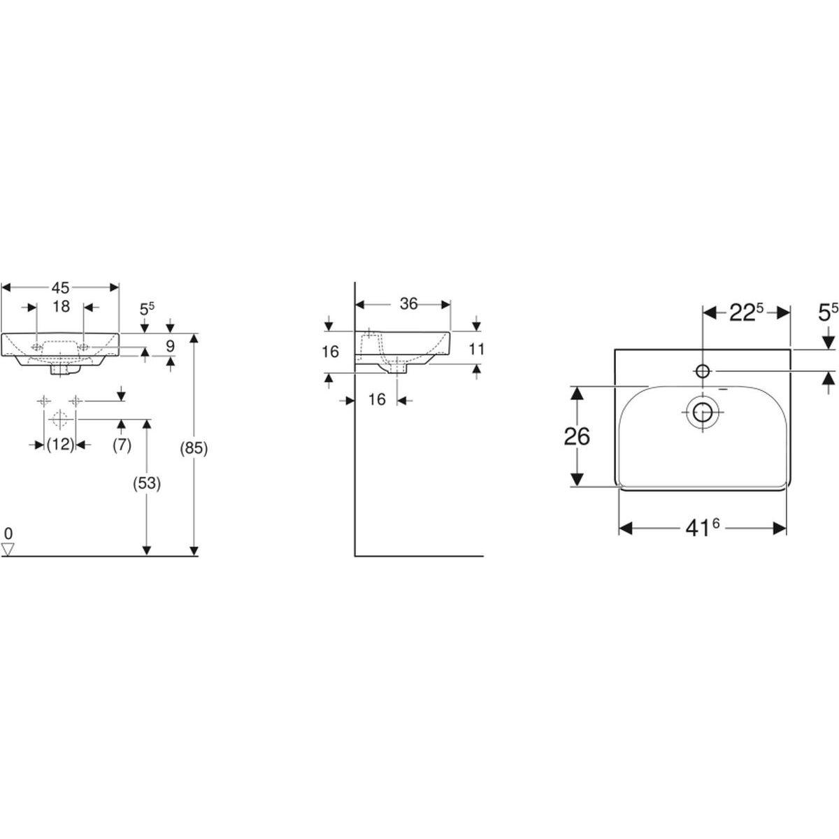 Geberit Smyle Square Waschbecken 45x36 cm rechteckig Klassisch-Möbel-Einbauwaschbecken weiß 500.222.01.8