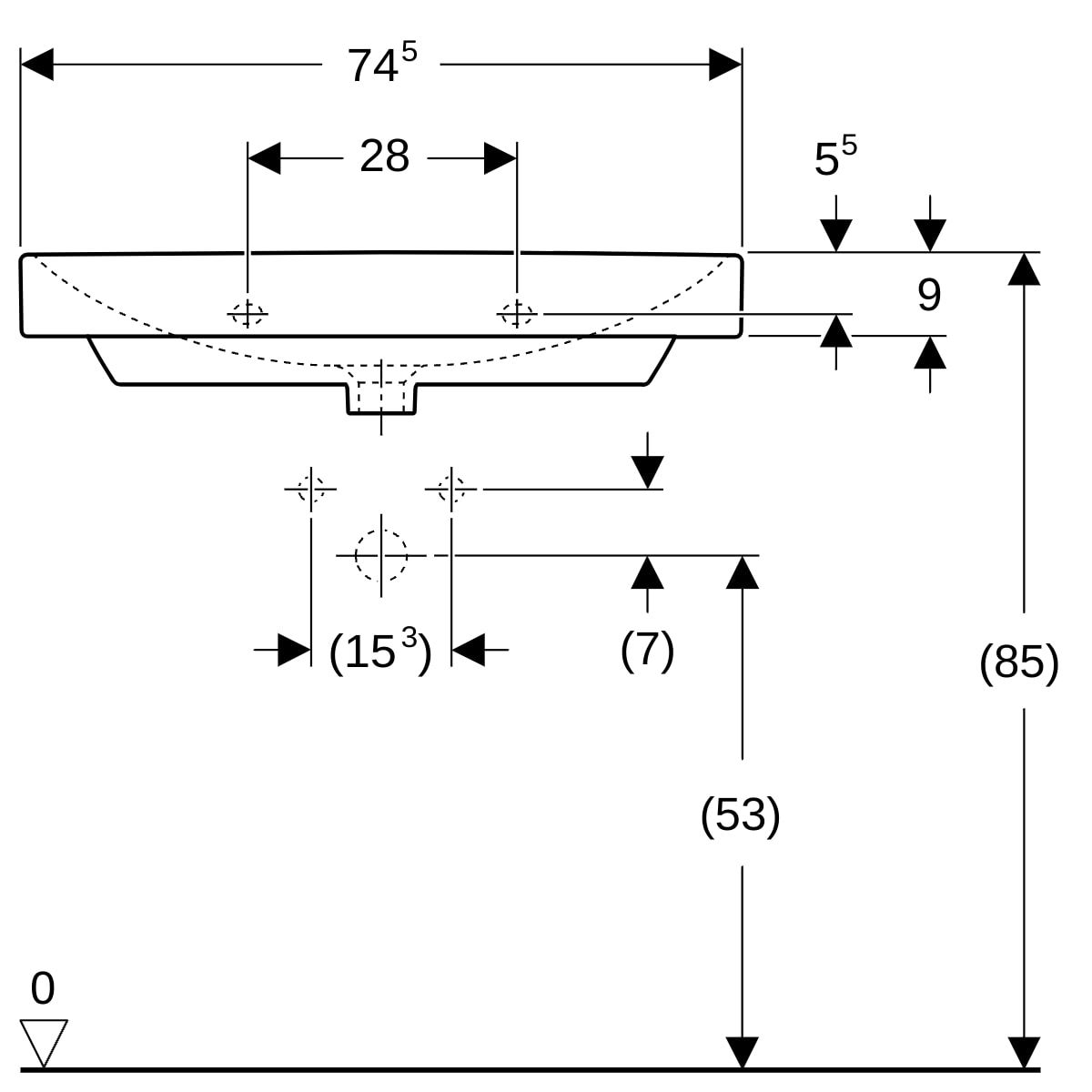 Geberit Smyle Square Waschbecken 74.5x48 cm rechteckig Klassisch-Möbel-Aufsatzwaschbecken weiß 500.249.00.2