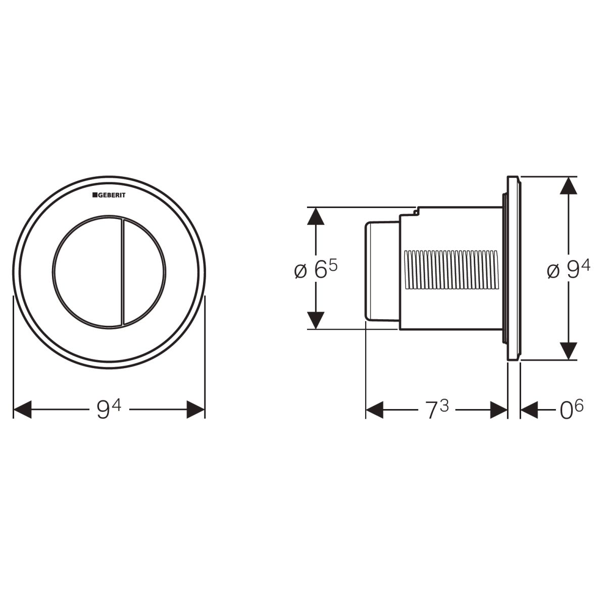 - Kombinierbar mit Geberit Betätigungstaster für Einmengen-Spülung mit „Spülen/Stopp”-Funktion oder mit Geberit Revisionsabdeckung