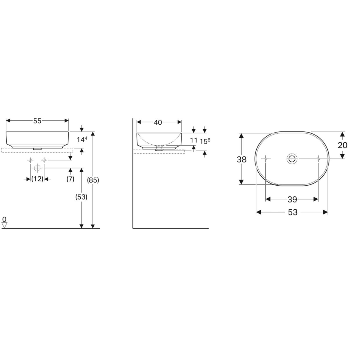 Geberit Variform Waschbecken 55x40 cm oval Möbel-Aufsatzwaschbecken weiß 500.771.01.2