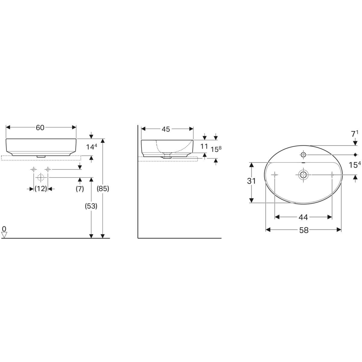 Geberit Variform Waschbecken 60x45 cm oval Möbel-Aufsatzwaschbecken weiß 500.772.00.2