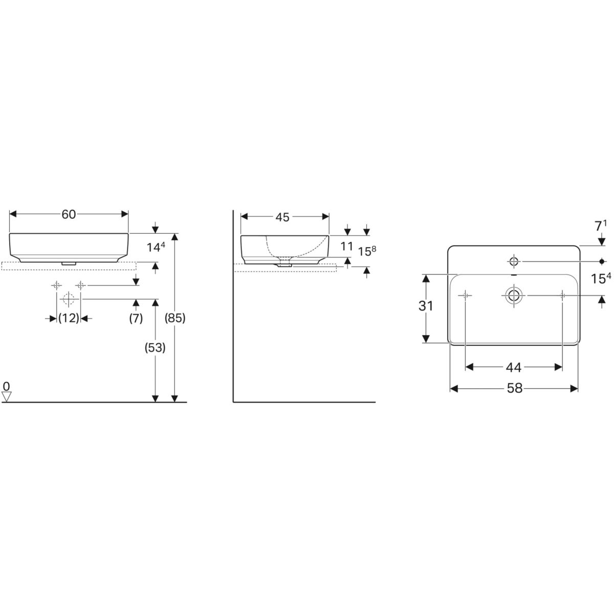 Geberit Variform Waschbecken 60x45 cm rechteckig Möbel-Aufsatzwaschbecken weiß 500.781.00.2