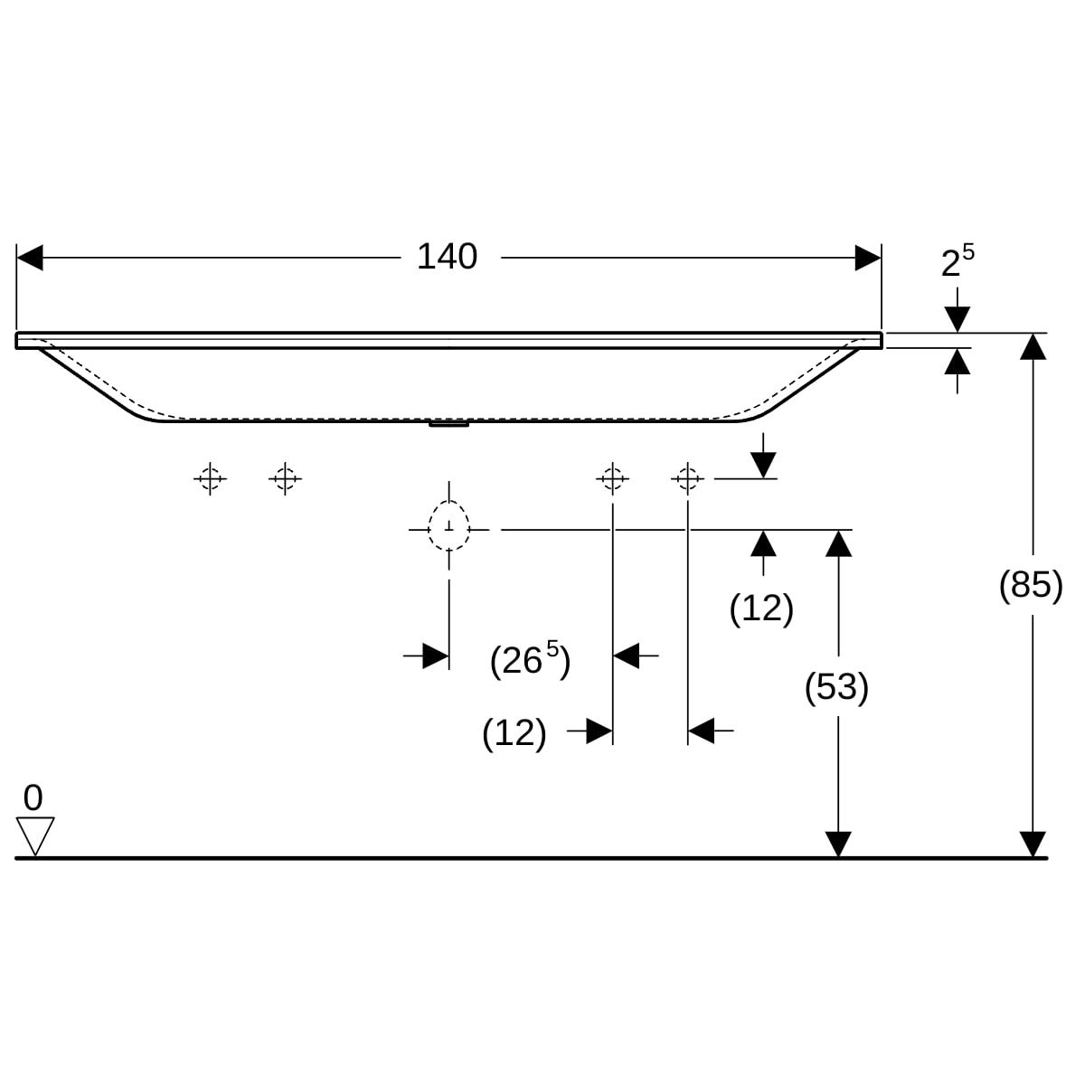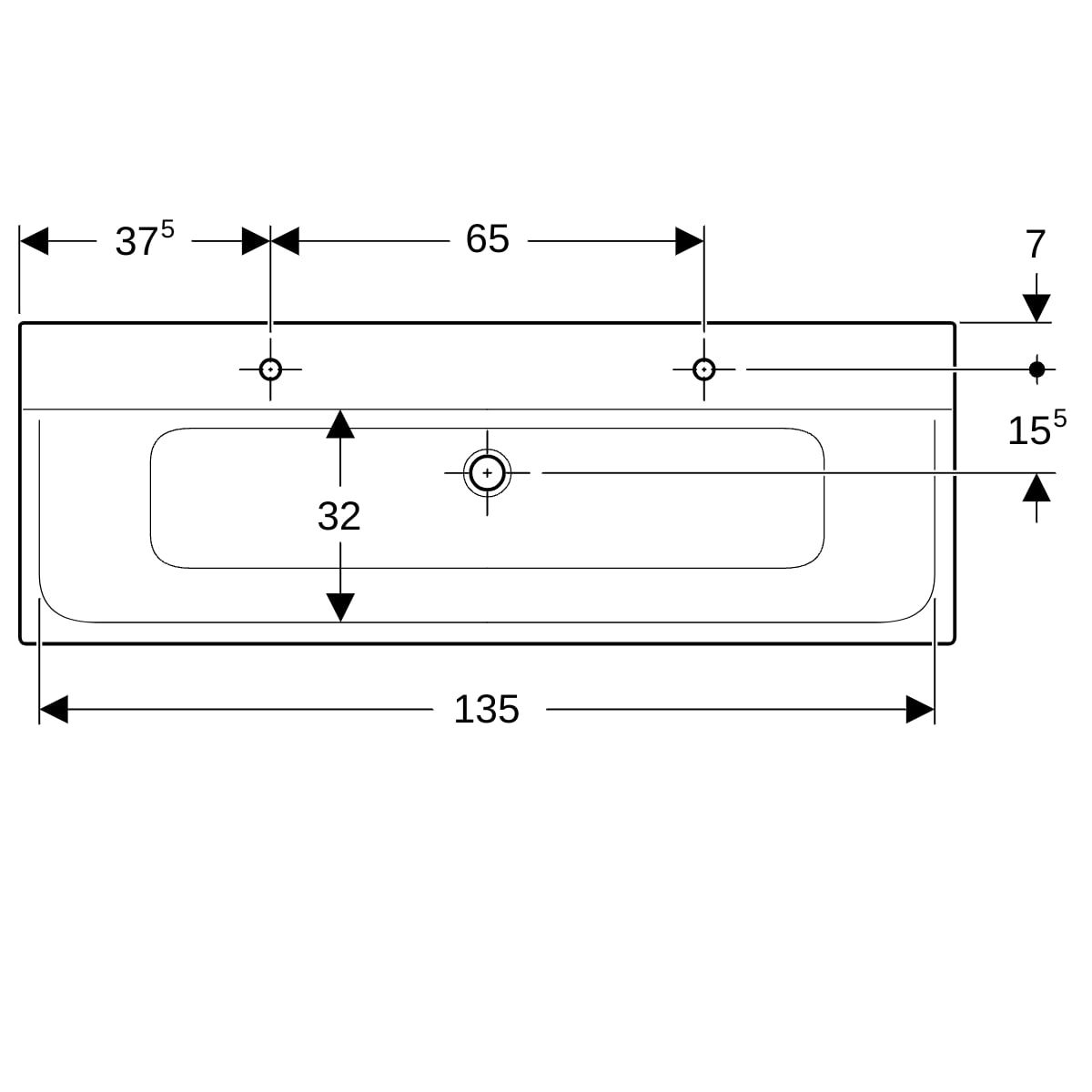Geberit Xeno2 Waschbecken 140x48 cm rechteckig Klassisch weiß 500.277.00.1