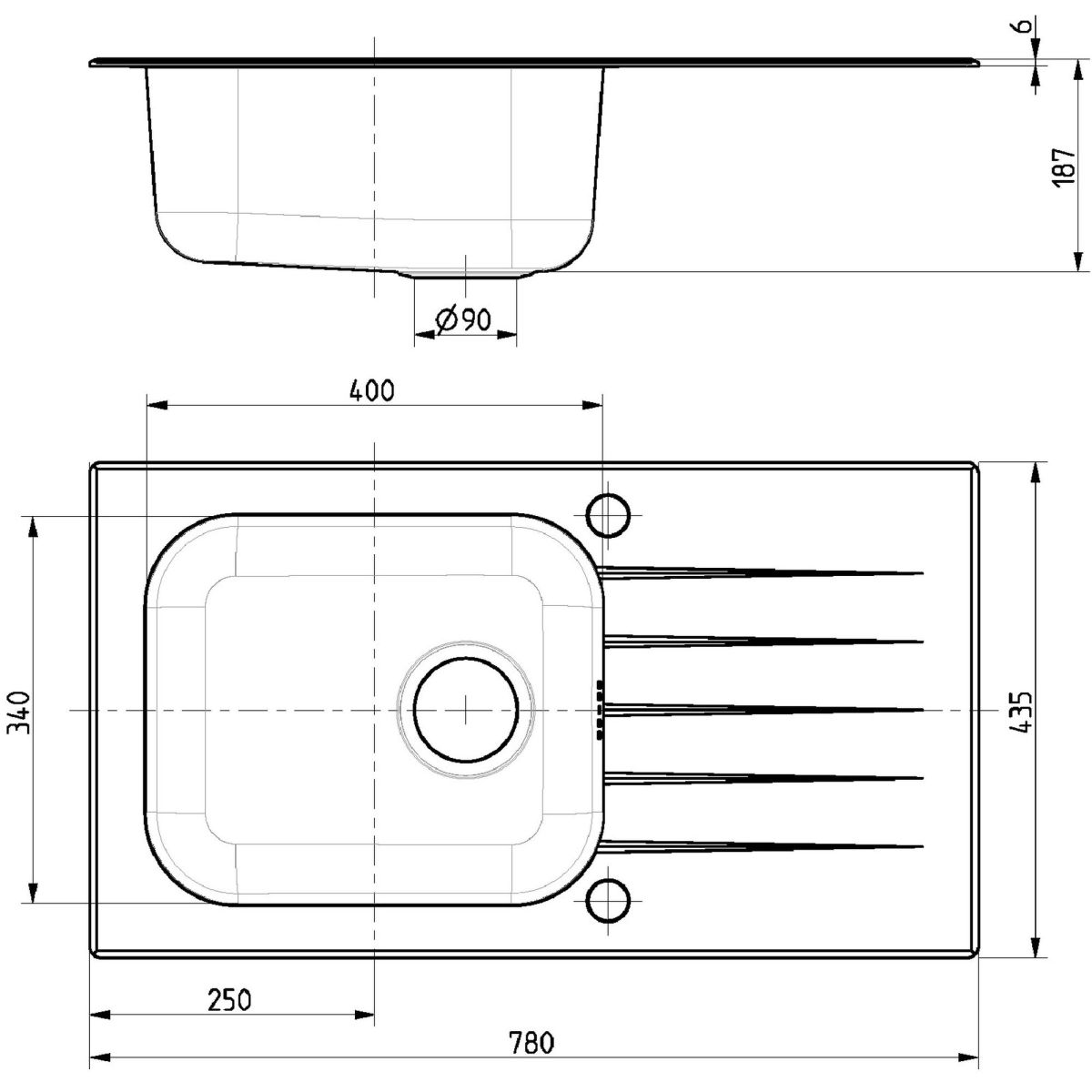 - umkehrbare Spüle