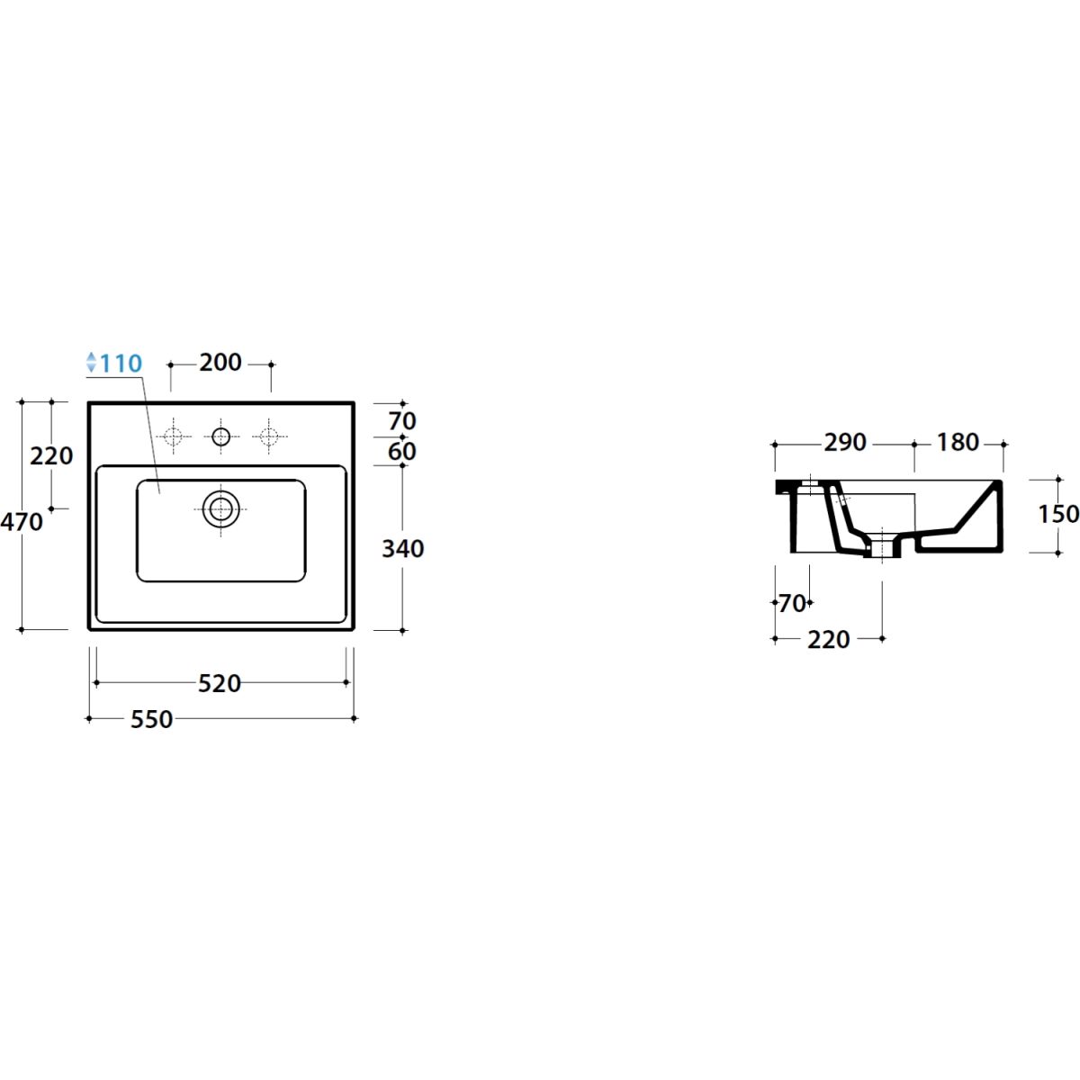 - mit Öffnung für Wasserhahn (zwei weitere Öffnungen möglich)