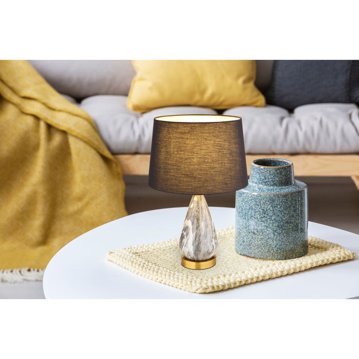 - Material: Stoff/Seide, Metall, Marmor