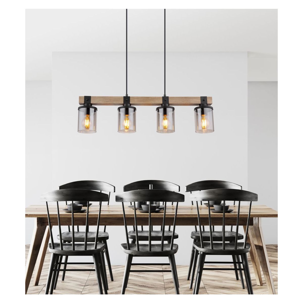 Globo Lighting Lila Pendelleuchte 4x60 W schwarz-holz 15555-4H