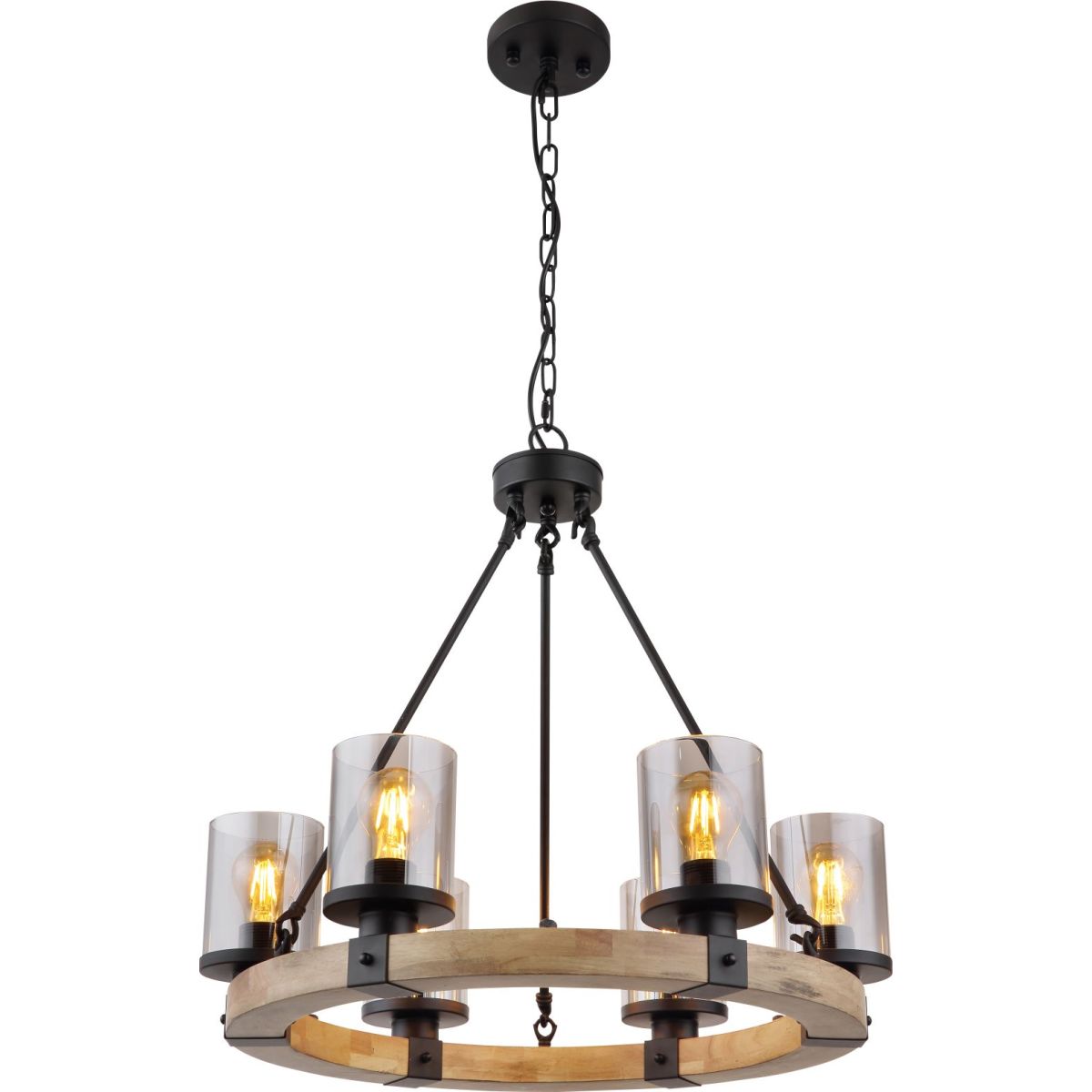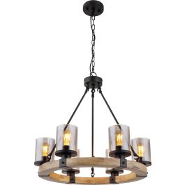 Globo Lighting Lila Pendelleuchte 6x60 W schwarz-verraucht-holz 15555-6H