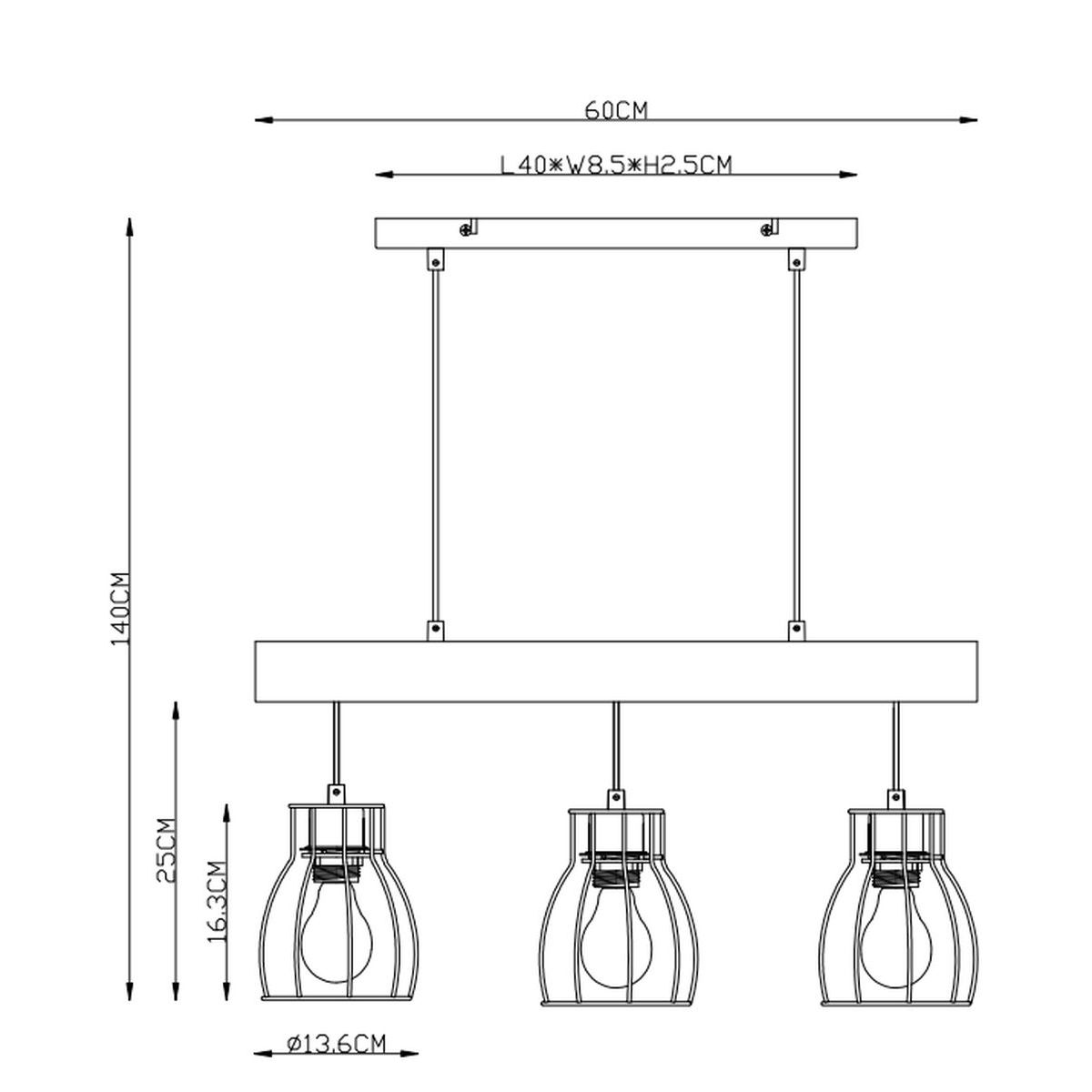 Globo Lighting Mina Pendelleuchte 3x40 W schwarz-holz 15326-3N