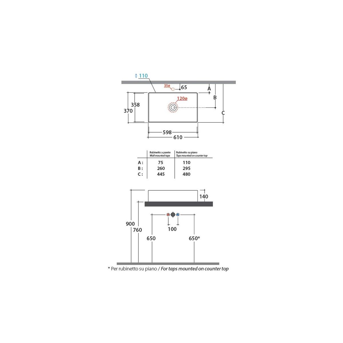 Globo T-Egde Waschbecken 61x37 cm rechteckig Aufsatzwaschbecken weiß B6R63.BI