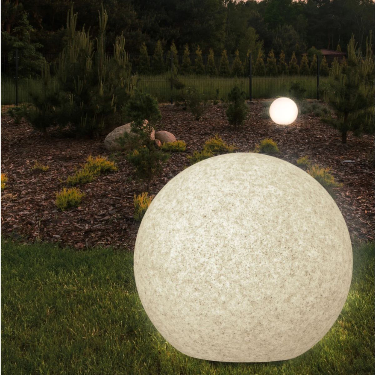 Die kugelförmige Form der Leuchte streut das Licht gleichmäßig und sorgt für einen sanften, dekorativen Effekt. Eine einzelne Leuchte betont dezent einen ausgewählten Ort im Garten, während mehrere Leuchten zusammen eine effektvolle Lichtkomposition entlang der Auffahrt oder rund um die Terrasse bilden.