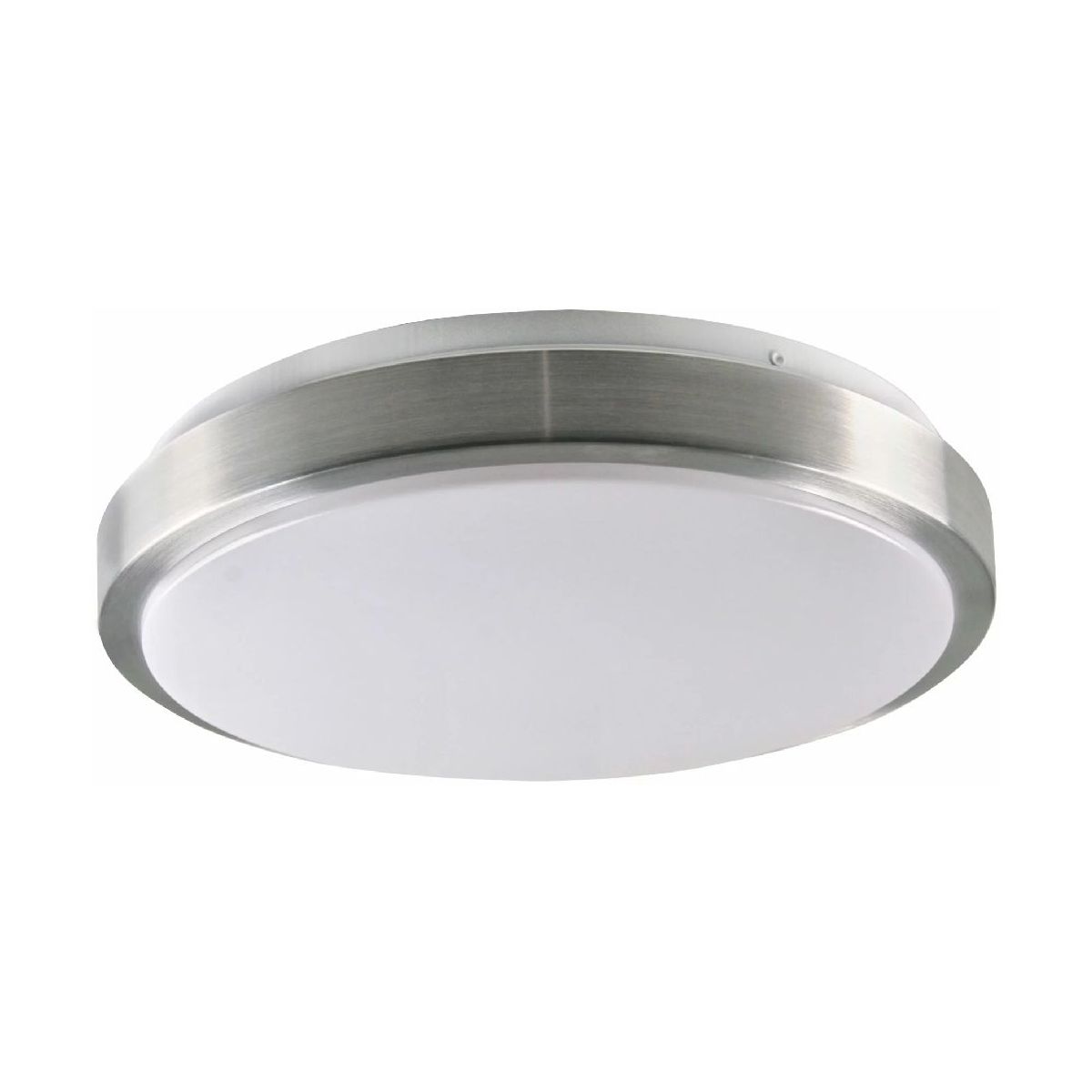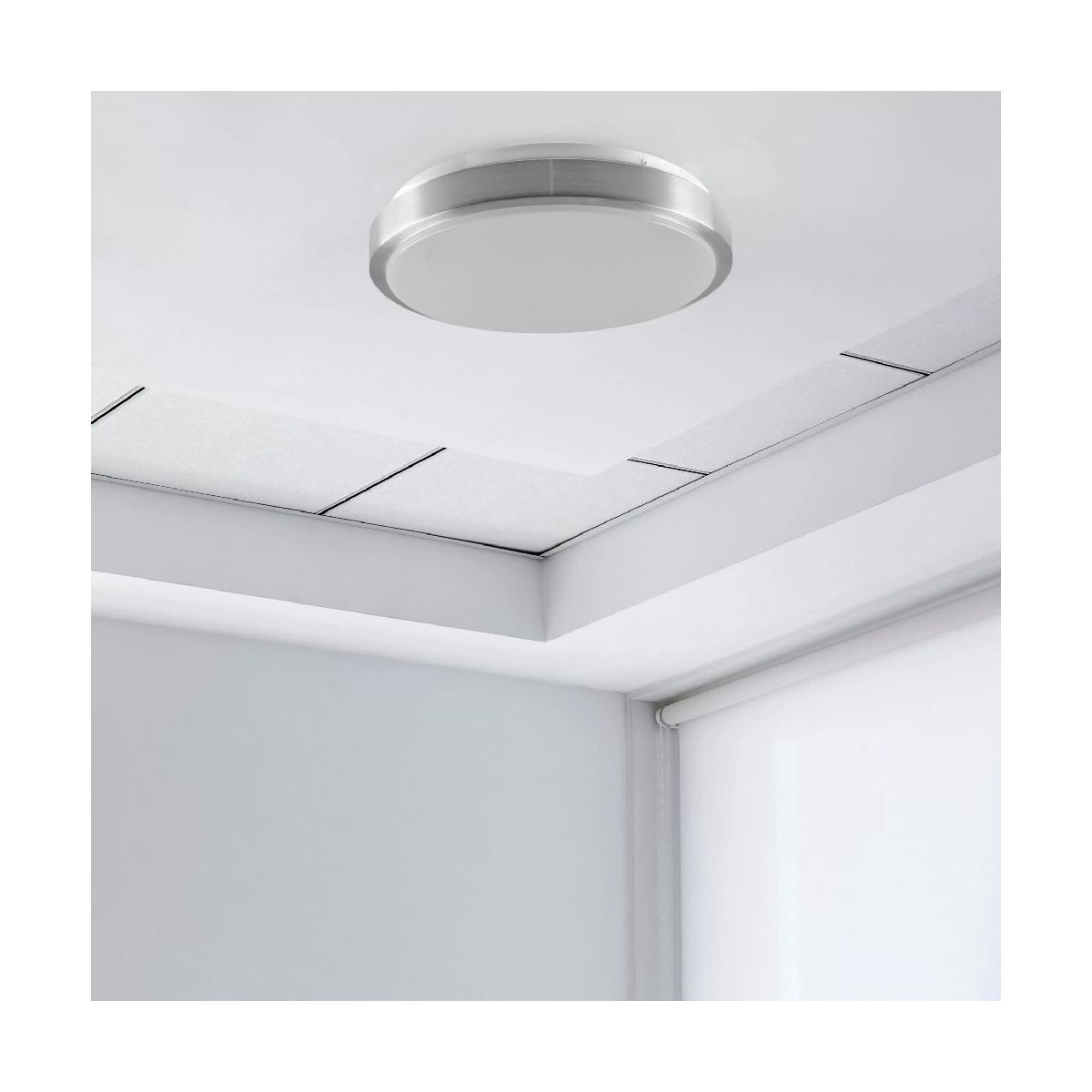 Die Deckenleuchte Goldlux Benedykt hat einen Durchmesser von 33 cm und ist nur 9 cm hoch, sodass sie sich auch für Räume mit niedrigen Decken eignet. Die runde Form in Chrom passt gut zu modernen Innenräumen.